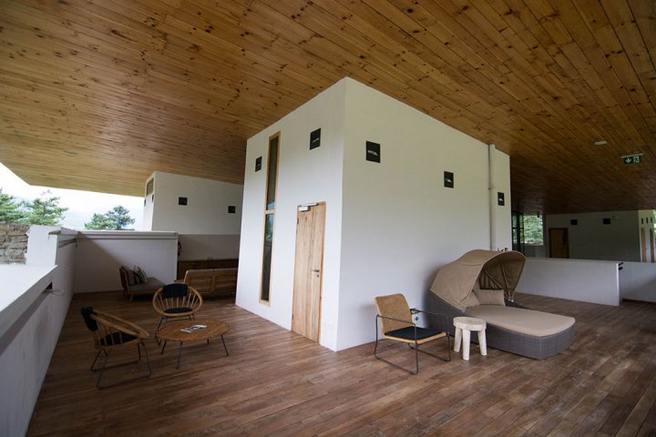Die Lodge wurde inmitten eines Pinienwäldchens sorgfältig angelegt um mit diesem zu harmonieren und heißt daher “Forest within a Forest”. Der Name unterstreicht das einzigartige Design der Lodge, die sich von den anderen