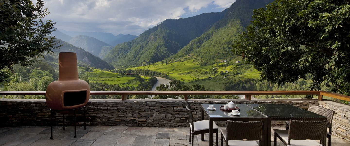 Im Juli 2017 eröffnet, ist dieses entzückende neue 4* Anwesen einem bhutanesischen Bauernhaus nachempfunden. Dieses einzigartige Boutique-Stil-Hotel befindet sich auf einer Fläche von 25 Hektar in einer eindrucksvollen Lage mit Blick auf die Stadt und das Tal von Thimphu.