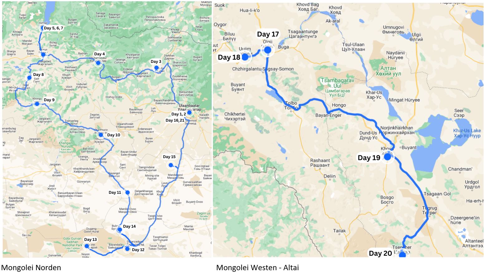 Tauchen Sie ein in die Welt der Mongolei, entdecken Sie ihre Naturschönheiten, erleben Sie die herzliche Gastfreundschaft der Menschen und lassen Sie sich von der Geschichte und Kultur dieses faszinierenden Landes faszinieren. Unsere 22-tägige Reise verspricht ein unvergessliches Abenteuer, das Sie tief in die Seele der Mongolei führt.