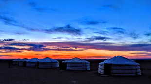 Spärlich besiedeltes Land und endlose Steinwüsten, aber auch von Wind und Wasser erodierte Märchenlandschaften begleiten Sie auf der heutigen Fahrt. Das erste Ziel ist Bayanzag und die Flammenden Klippen. Diese zerfurchte Wüstengegend ist bekannt für bedeutende Dinosaurierfunde. Am Abend treffen Sie auf Ruinen zweier grösserer Klöster des 19. Jahrhunderts, gelegen am Ongi Fluss.