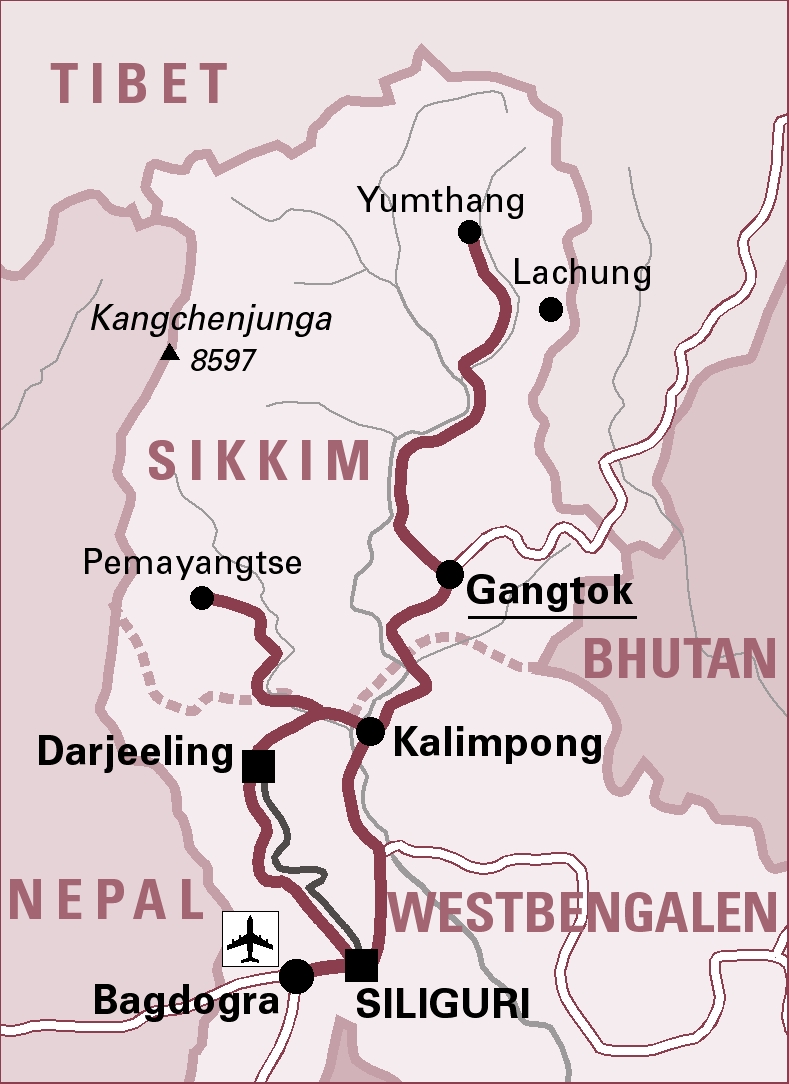Wie ein Paradies wirkt das ehemalige Fürstentum Sikkim auf die meisten seiner Besucher: Hunderte Orchideenarten, Rhododendrenwälder, Dschungel, schneebedeckte Berge, allen voran der Achttausender Kanchenjunga im Grenzgebiet zu Nepal und Tibet charakterisieren dieses kleine Hochgebirgsland und unsere Tour im östlichen Himalaya. Von besonderem Interesse wird der Abstecher in den wenig besuchten Norden Sikkims nahe der tibetischen Grenze sein. Doch auch die Herzlichkeit und Religiosität der einheimischen Bergbevölkerung beeindrucken uns.