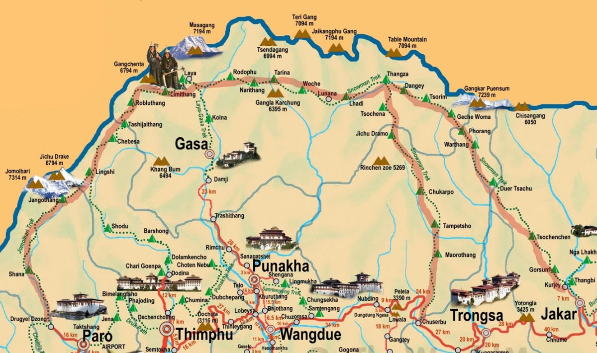 Der Snowman Trek gehört zu einer der aufregensten Touren auf unserer Erde. Die anspruchsvolle Tour führt über nicht weniger als elf Pässe, von denen drei über 5000m hoch sind. Die Route berührt eine dramatischen Gebirgslandschaft, geht vorbei am Jomolhari (7315m) dem Ganker Punzum und dem Rinchita (7541m); diese 3 Gipfel gehören wahrscheinlich zu den höchsten unbezwungenen Gipfel dieser Welt.
