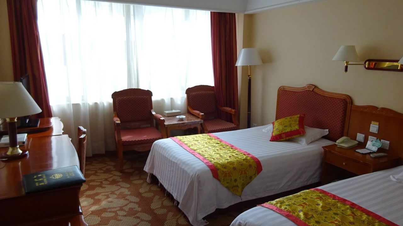 Das Hotel bietet eine Mischung aus westlichen und tibetischen Zimmern, von Einzel- über Doppel- bis hin zu Dreibettzimmern, alle mit eigenem Bad und Fernsehen. Die traditionell gestalteten Deluxe-Suiten und Standardzimmer haben bequeme Betten und bieten schöne Ausblicke auf die Stadt und die umliegenden Berge.