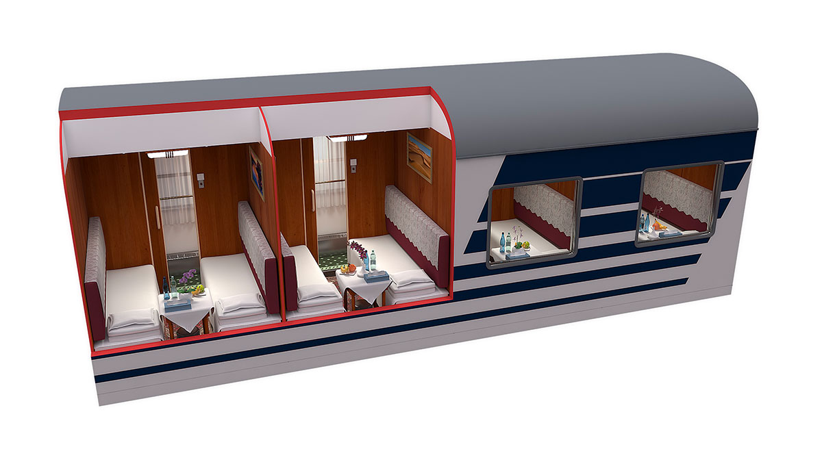 Toiletten- und Duscheinrichtungen stehen an jedem Ende des Schlafwagens zur Verfügung. Das Duschbad verfügt über eine separate Duschkabine, einen Fön und einen separaten Umziehbereich.