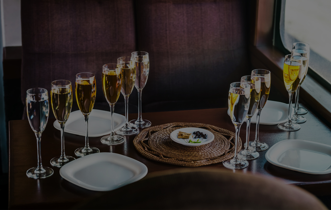 You can choose between wagons with large seats and comfortable private tables for four in a decorated wooden wagon that emulates the old Orient Express, or enjoy the lounge that is available in one of our Premium Plus wagons. They have a bar and waiters service.